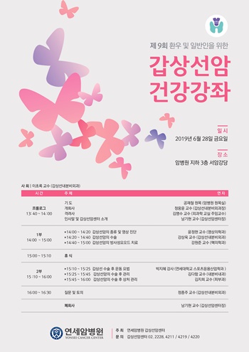 [메디칼업저버 정윤식 기자] 연세암병원 갑상선암센터가 오는 28일 오후 1시 40분부터 연세암병원 지하 3층 서암강당에서 '제9회 갑상선암 건강강좌'를 개최한다.
