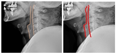 이에 이 교수 연구팀은 경추 X-ray 검사에서 C2번과 C6번 척추 앞 공간을 검출할 수 있도록 200명의 측정값을 데이터화 해 딥러닝을 통해 AI에 학습시켰다.