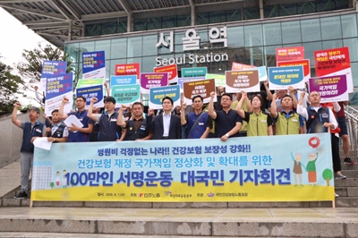 이들 단체는 지난 7일 서울역 광장 앞에서 '건강보험 재정 국가책임 정상화 및 확대를 위한 100만인 서명운동 대국민 기자회견'을 개최하고 이 같이 밝혔다.