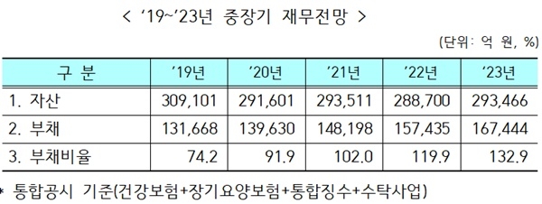 [메디칼업저버 정윤식 기자] 국민건강보험공단이 2023년까지 건보재정의 부채비율이 지속 증가할 것으로 전망하고 나섰다.