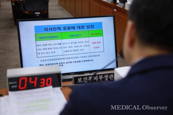 이에 대해 박능후 장관은 "의사 정원 증원은 필요하고, 중요하다"면서도 "의사 증원은 정부의 의지만으로 한계가 있다"고 답변했다.