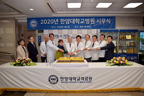 한양대병원은 2일 본관 1층 로비에서 '2020년 신년 시무식'을 개최했다. 시무식에는 최호순 의무부총장 겸 의료원장, 윤호주 병원장을 비롯한 주요 보직자와 교직원들이 참석했다.
