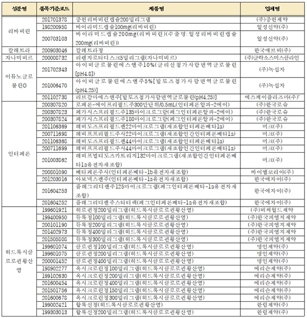 이번에 공개되는 유통업체 정보는 최근 보건복지부 고시를 통해 급여기준이 변경된 코로나 치료제 품목(인터페론 제제, 리바비린 제제 등 35개 품목)을 보유(추정)하고 있는 업체 정보다.
