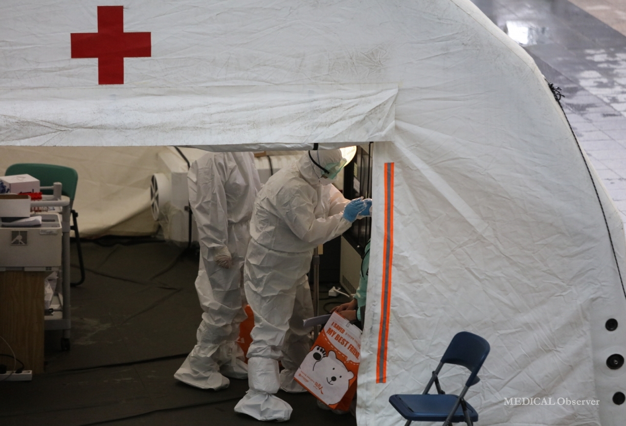 [메디칼업저버 김민수 기자] 이태원 클럽을 중심으로 코로나19 다시 집단감염이 발생하면서 코로나19 검체 채취를 위한 선별진료소가 분주해졌다.