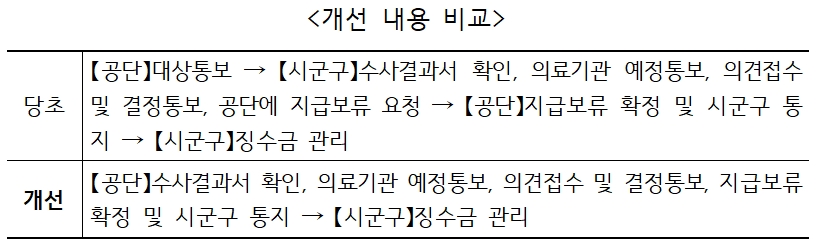 이번 개선에 따라 국민건강보험공단이 불법개설기관 의료급여 지급보류 업무를 위탁 수행하고, 지방자치단체에서는 징수금만 관리하게 됐다.