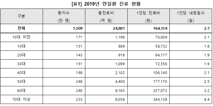 안질환, 2019년 진료 환자수 1509만명…진료비 2조 4801억원