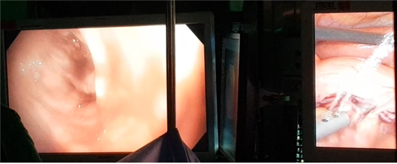 내시경으로 위의 내부를 볼 수 있기 때문에 복강경 카메라로 확인이 어려운 미진한 봉합 부위를 정확히 찾아낼 수 있고, 절제부위의 내부출혈 여부도 확인할 수 있다.