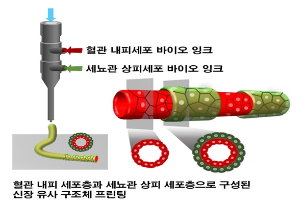 [메디칼업저버 박선혜 기자] 국내 연구팀이 3D 바이오 프린팅 기술로 근위 세뇨관과 혈관이 결합된 관상 구조체 개발에 성공했다.