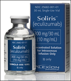솔리리스는 아쿠아포린-4항체(AQP4-IgG)에 양성인 NMOSD 환자를 대상으로 승인된 이 분야 첫 약물이다. 특히 C5 보체단백질(terminal complement protein)을 신속하게 저해하는 효과가 있는 것으로 알려졌다.