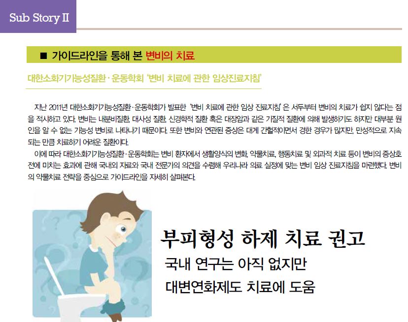 - 대한소화기기능성질환·운동학회‘변비 치료에 관한 임상진료지침’