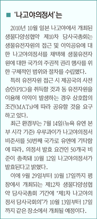 한편 환경부 관계자는 "나고야의정서 발효가 결정됨에 따라 우리나라의 비준 여부와 상관없이 산업계에 바로 영향을 미치게 됐다"며 "현재 이행법률을 제정 중이며, 관련 부처와 산업계 간 지속적인 협의를 하겠다"고 밝혔다.
