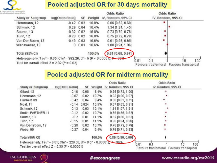 박사는 transfemoral(TF-AVI)과 transapical(TA-AVI)을 비교했다. TA-AVI는 심장좌심실에 직접 주사하는 수술법으로 TF-AVI보다는 더 침습적이다.