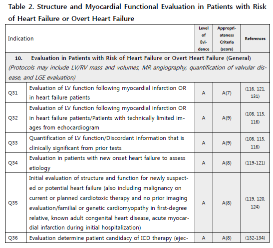 아울러 선천성 심질환 환자나 심장판막질환의 평가, 심근질환이 진단되거나 의심되는 경우, 비후성심근증 환자의 평가 도구로 유용성을 강조했다(모두 A). 그 밖에 심장종괴 협착성 심장막염 평가, 대동맥 박리 진단, 구조적 심질환의 경피적 시술전 평가도 구로서도 활용할 수 있다(모두 A).