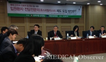 대한내과학회와 문정림 의원(국회 보건복지위원회·새누리당)은 7일 국회에서 '입원환자 전담전문의(호스피탈리스트) 제도 도입 방안'을 놓고 토론회를 열어, 각계의 의견을 모았다.