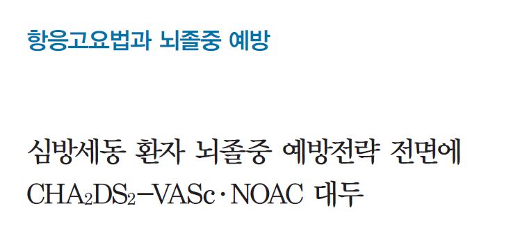 신규 항응고제 vs 와파린 vs 항혈소판제