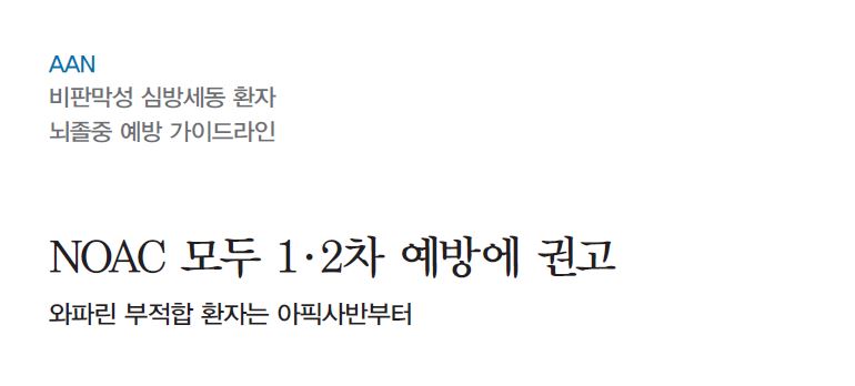 뇌졸중 고위험군에게 항응고치료를, 뇌졸중 1·2차예방 전반에 와파린과 함께 3개 NOAC을 권고한 것은 여타 가이드라인과 거의 차이가 없다.