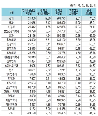 의원급 의료기관 내과·외과 명암 엇갈려...건당급여비 소청과 가장 낮지만, 청구량 많아 'SO SO'