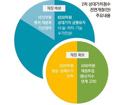 이 '상대가치균형유지' 작업에 들어가는 비용이 1조원 중 8330억원으로 가장 많다. 영상·검체수가 인하로 넘어오는 돈이 5000억원, 점수 조정에 따른 비용이 3330억원이다.