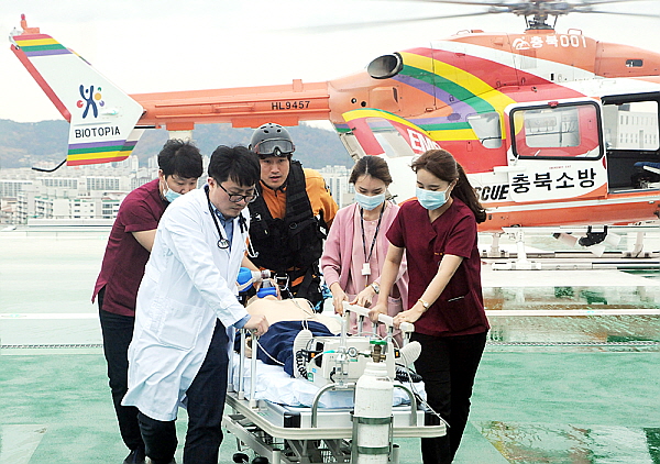 충북대병원, 충북도소방본부와 '119 구급헬기훈련