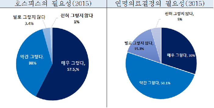 이러한 결과는 우리 사회가 호스피스 및 연명의료 관련법에 대한 사회적 공감대가 형성돼 있다는 것으로 읽힐 수 있는 부분이다.