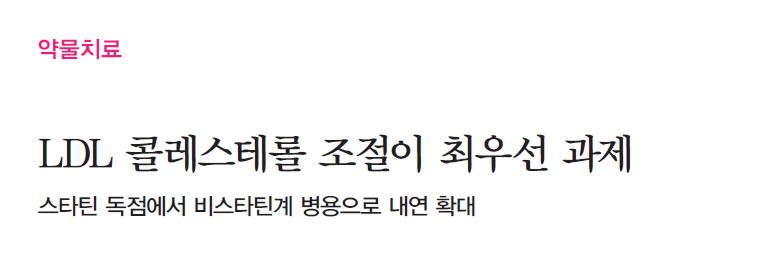 한국지질동맥경화학회의 새 지침은 LDL 콜레스테롤 강하를 이상지질혈증 치료의 1차목표로 내세우는 동시에, 이를 위한 약물요법에 스타틴을 앞세우고 있다. 심혈관질환 위험도에 따라 LDL 콜레스테롤 목표치에 도달할 수 있도록 용량을 조절하라는 주문이다.