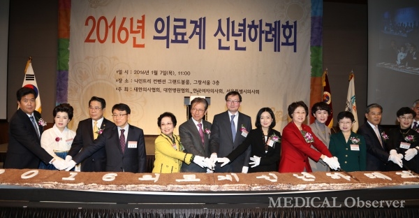 대한의사협회와 대한병원협회, 한국여자의사회, 서울특별시의사회는 7일 나인트리컨벤션에서 '2016년 의료계 신년교례회'를 개최했다.