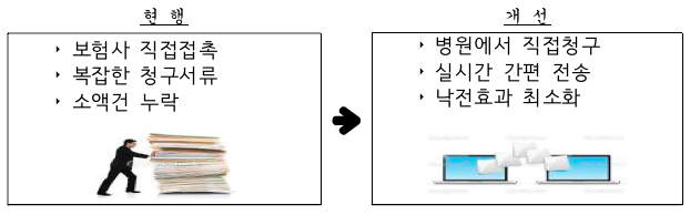 환자가 요청하면 의료기관이 온라인으로 해당환자의 진료비 내역 등을 보험회사에 직접 보내(청구대행), 환자가 보험금을 받을 수 있도록 한다는 것이 사업의 골자다.