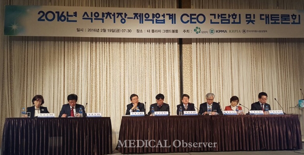 19일 2016년 식약처장-제약CEO 간담회 및 대토론회에서는 제약산업의 창조경제를 견인하고 신약개발 지원을 위한 규제개혁 방안을 논의하는 시간이 마련됐다.