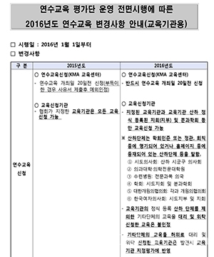 앞서 의협은 다나의원 사태로 연수교육을 강화해야 한다는 여론이 대두되자 ‘2016년도 연수교육 변경사항’ 안내문을 일선 연수교육기관 및 의료기관에 배포한 바 있다.