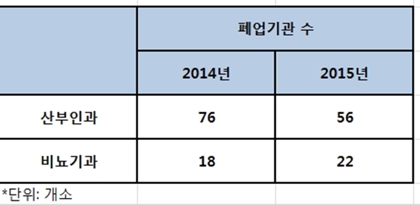 실제로 자료에 따르면 산부인과의 경우, 2015년 요양급여비용은 5815억원으로, 전년(5391억원) 대비 424억원 늘었다.