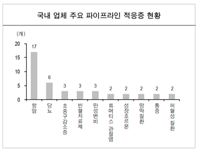 또한 항암제, 당뇨병치료제, 호증구감소증약, 빈혈치료제, 성장호르몬, 통증 등 다양한 질환에서 연구개발이 진행되고 있다.