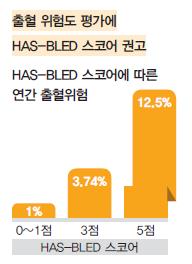 현재 HAS-BLED 스코어 시스템에 따르면, 점수가 0~1점인 환자는 연간 출혈위험이 1%에 불과하지만 5점인 경우 12.5%로 증가한다. 3점인 경우 3.74%이며 이는 심방세동에 의한 뇌졸중 고위험군과 유사하다. 따라서 3점 이상인 환자부터는 출혈 합병증을 막기 위한 정기적인 검토 또는 출혈 위험을 막기 위한 노력이 필요한데 이러한 내용도 이번에 포함됐다.