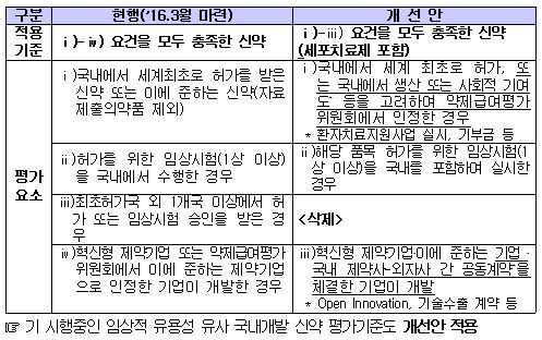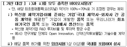 아울러 이들 의약품에 대해서는 심평원 약제급여 평가기간을 기존 120일에서 100일로 단축하며, 건보공단의 약사협상 기간 또한 현행의 절반인 30일로 줄이기로 했다.