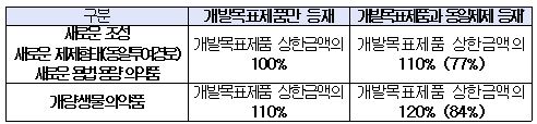 이 밖에 정부는 R&D 투자비율이 높은 혁신형기업의 약가인하율 감면을 기존 30%에서 최대 50%로 확대하기로 했다. 혁신형 기업 가운데 투자액이 500억원 이상이거나 매출액이 3000억원 이상이면서 투자비율이 10% 이상인 곳에 대해서는 50%의 감면율을 적용한다는 계획이다.