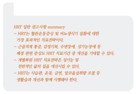 이와 함께 HRT 외 칼슘, 비타민 D, 비스포스포네이트, SERM인 랄록시펜 및 바제독시펜, 부갑상선 호르몬, 스트론튬, 데노수맙 등 골다공증 치료전략도 적절하게 적용하도록 했다.