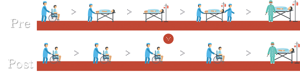 수술실로 이동하는 방법, 대기시간 감소, 수술 대기실 환경에도 세세한 관심을 쏟았다고 한다. 대부분의 병원이 환자를 수술실로 이동할 때 스트레처카를 이용한다. 스트레처카 위에 똑바로 누운 환자는 매우 불안해하는 것으로 나타났다. 그래서 휠체어를 사용할 수 있는 환자는 스트레처카 대신 이를 이용해 수술실로 이송하도록 했다.