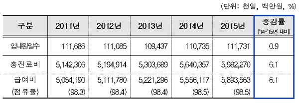 의료급여 입내원일수 역시 1억 1173만일로 지난해 1억 1073만일 보다 0.9% 늘었다.