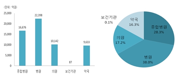 종별로 살펴보면 종합병원과 병원급 의료기관이 전체의 66.3%를 점유하고 있었다.