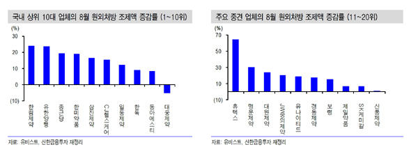 23일 신한증권 보고서에 따르면 지난 8월 원외처방 조제액은 전년 같은 기간보다 15.2% 증가한 9961억원을 기록했다. 3개월 연속 10% 이상 성장세를 이어가고 있는데다 사상 최고액이다.