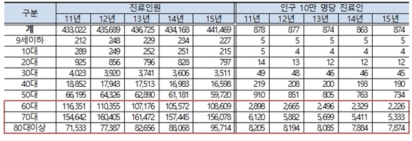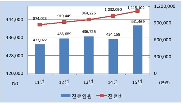 이에 따른 진료비는 2011년 8740억원에서 2015년 1조 1181억원으로 27.9%(2441억원) 증가했다.