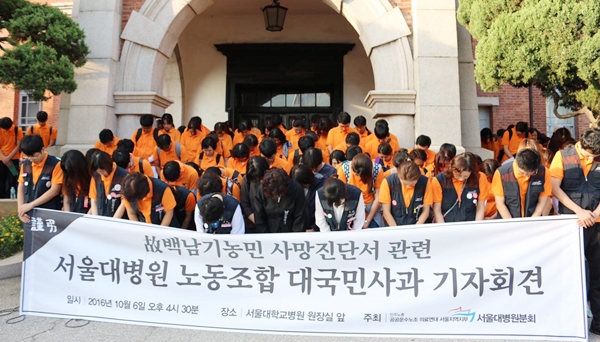서울대병원 노동조합은 최근 “서울대병원을 국민의 생명과 존엄성을 가장 먼저 생각하는 진정한 공공병원으로 바로잡지 못한 책임을 느낀다”며 故 백남기 농민 사망진단서와 관련 대국민 사과에 나섰다.