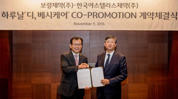 보령제약(대표 최태홍)과 한국아스텔라스제약(사장 정해도)은 9일 신라호텔에서 전립선비대증에 따른 배뇨장애 증상개선제 `하루날디`와 과민성방광증상 치료제 `베시케어`에 대한 코프로모션 계약을 체결했다.