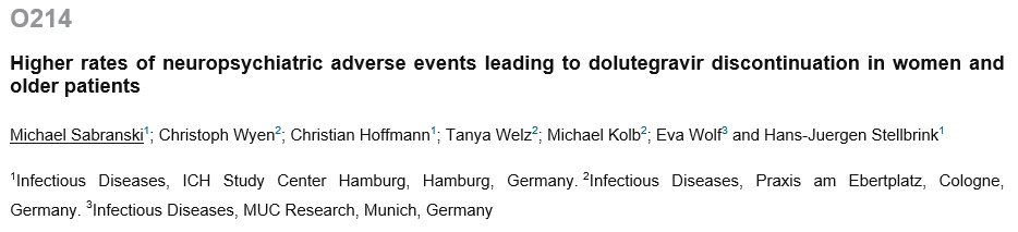 먼저 독일 함브루크 감염의료센터(ICH) Michael Sabranski 박사는 리얼월드에서 돌루테그라비르의 신경정신과적 이상반응(neuropsychiatric adverse events)이 5.6% 가량 나타났다고 구두 발표했다.