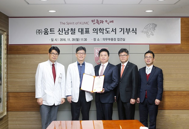 고대의료원(의무부총장 겸 의료원장 김효명)이 움트 신남철 대표(농학과 85학번)로부터 의학도서를 기증받았다.