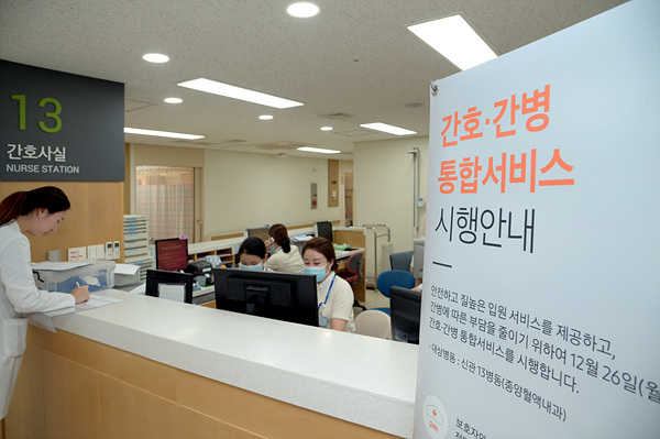 지난해 12월 초 아주대병원은 내과계 병동인 13층 서병동을 간호·간병 통합서비스 병동으로 단장하고 간호사 39명, 간호조무사 8명, 간병도우미 4명의 인력을 확보하여 운영에 들어갔다.