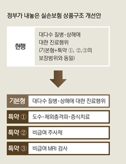 이번 개선방안의 가장 큰 변화는 보장 구조의 변경이다. 기본형과 다양한 특약 구조 형태로 바꾼 것이다.