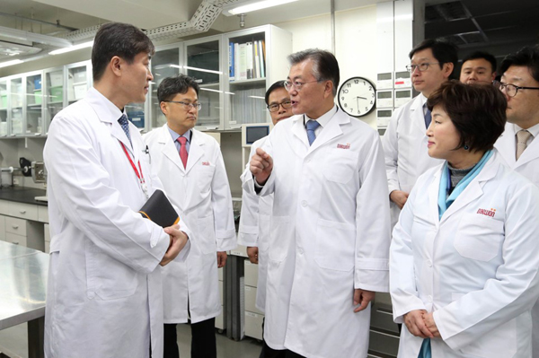 유력 대권주자인 문재인 전 더불어민주당 대표가 19일 대원제약 연구소를 방문했다. 좋은 일자리 기업 방문행사 때문이었다.