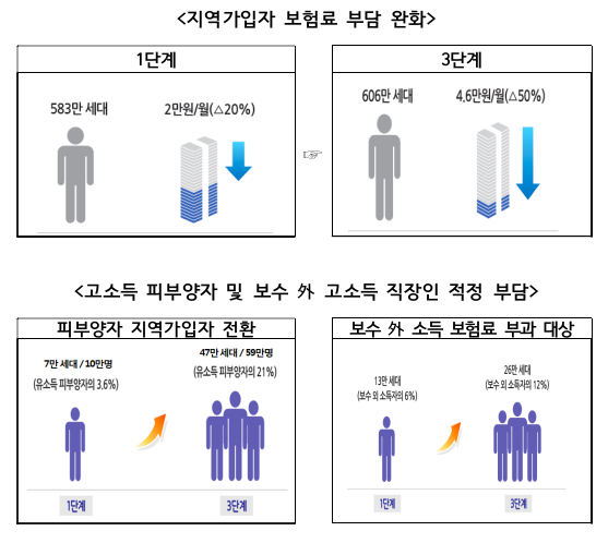 소득중심 부과체계로 형평성 제고...저소득 지역가입자 부담 완화-고소득자 보험료는 인상