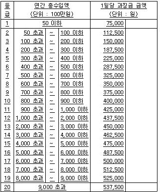 구간은 의료기관 수입액을 기준으로 1~20단계로 나눠져 있다.