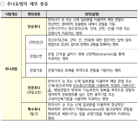 정부는 이번 시범사업을 통해 추나요법 건강보험 적용의 근거를 마련할 예정이다.